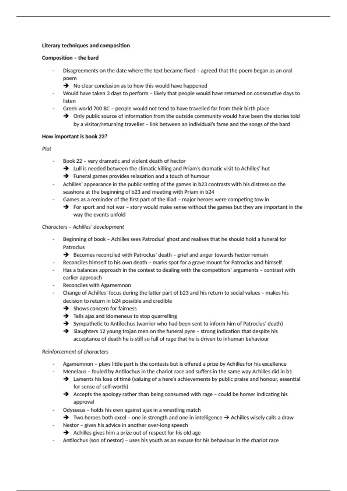 Summary The Iliad - literary techniques and composition