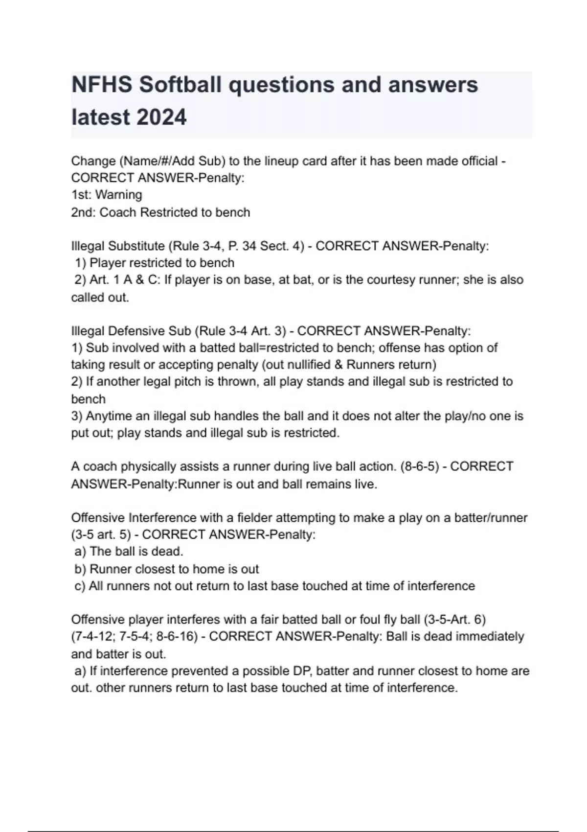NFHS Softball questions and answers