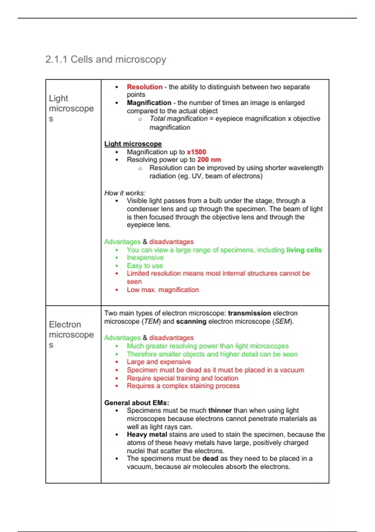 microscope Advantages & disadvantages