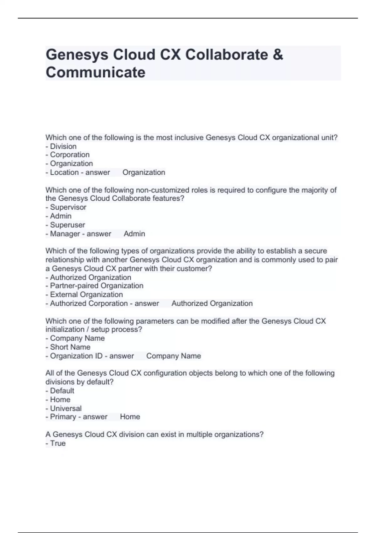 Genesys Cloud CX Collaborate & Communicate Questions and Answers 2024