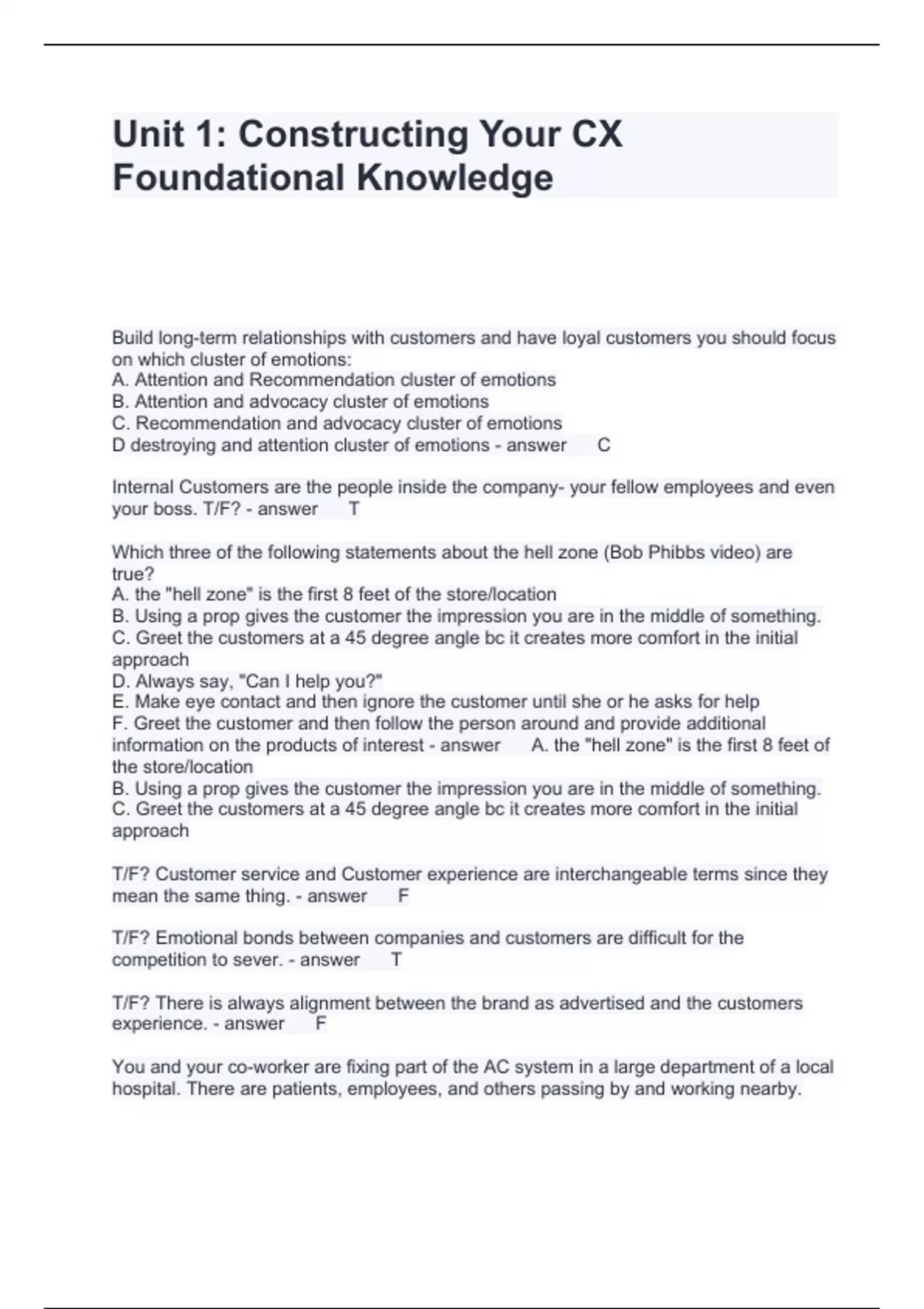 Unit 1: Constructing Your CX Foundational Knowledge Questions and Answers