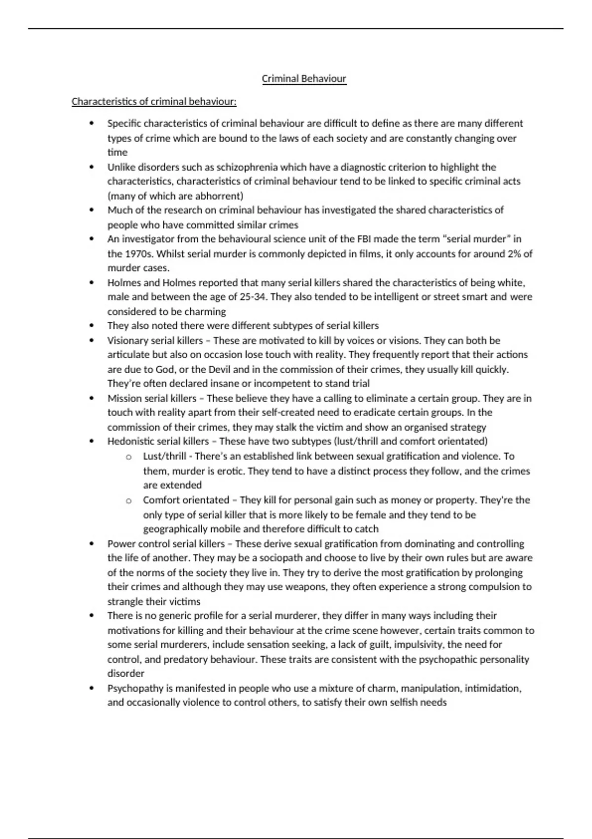 characteristics, characteristics of criminal behaviour tend to be linked to specific criminal acts