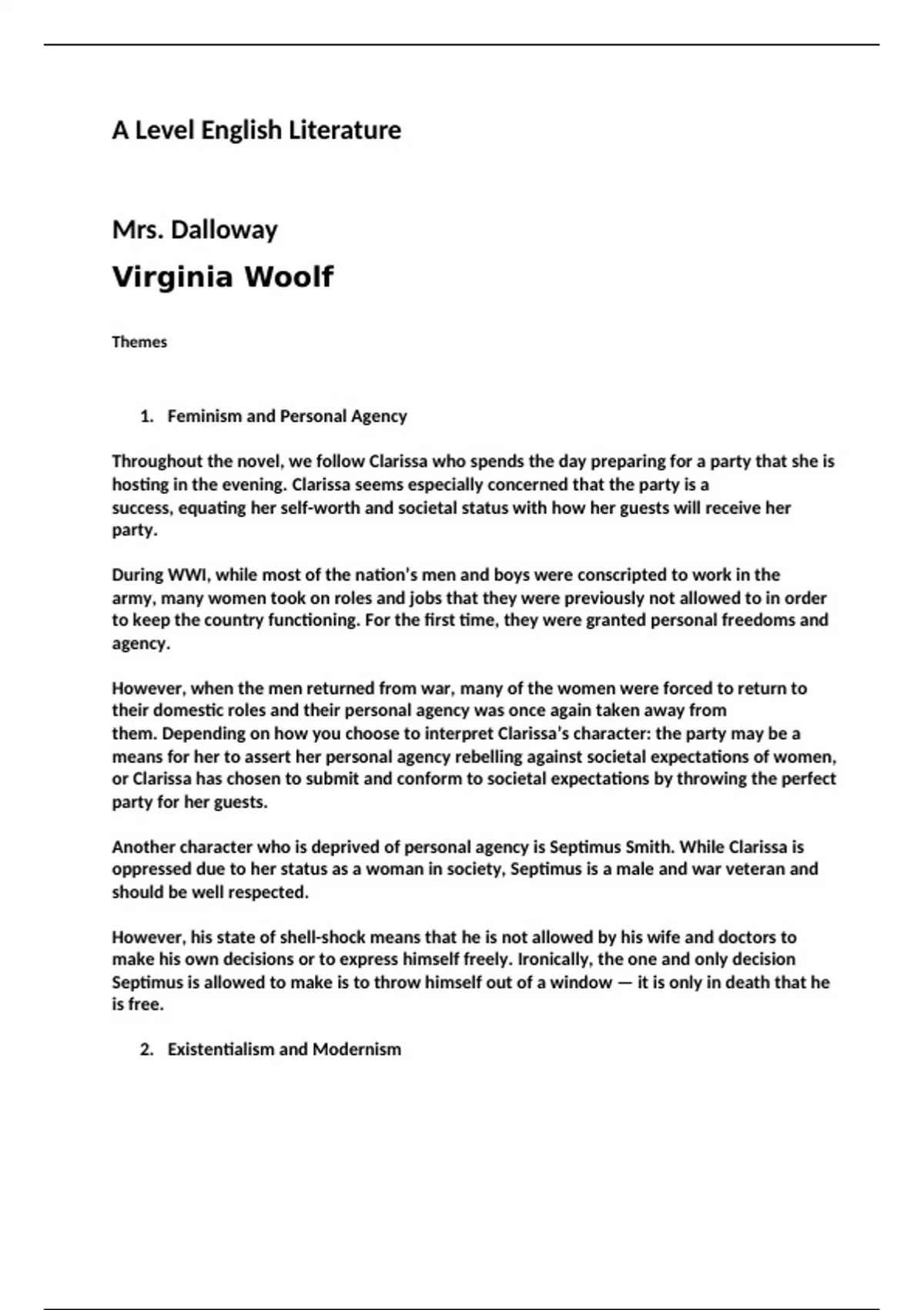 A* revision notes "Mrs. Dalloway" A LEVEL ENGLISH LITERATURE
