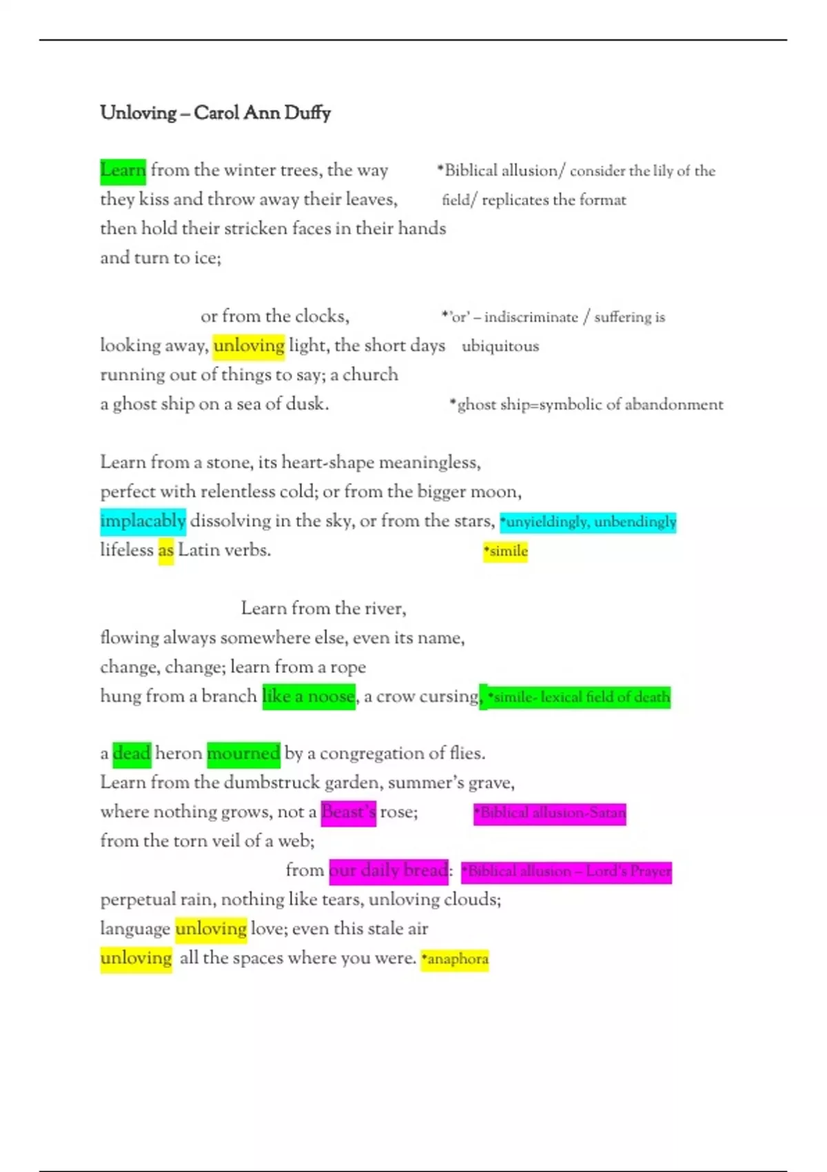 Unloving – Carol Ann Duffy