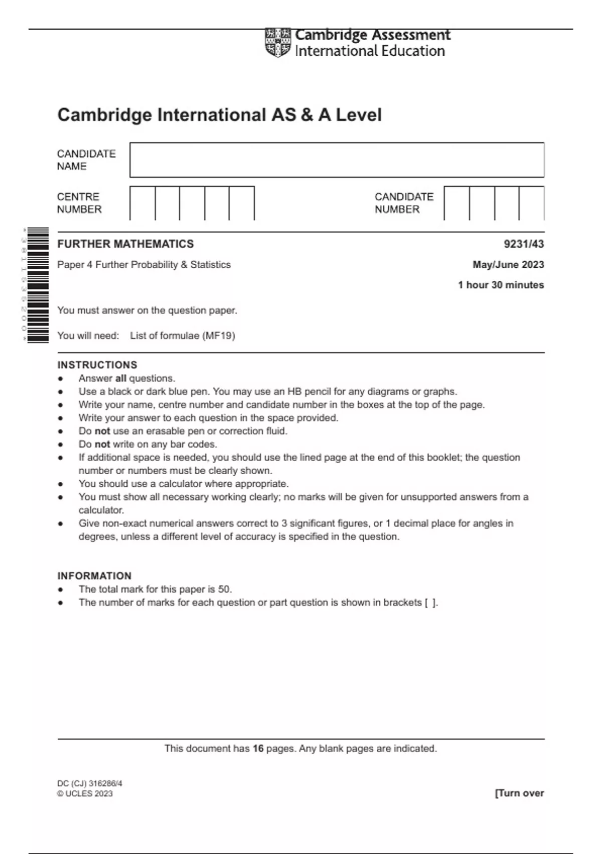 ● The total mark for this paper is 50.