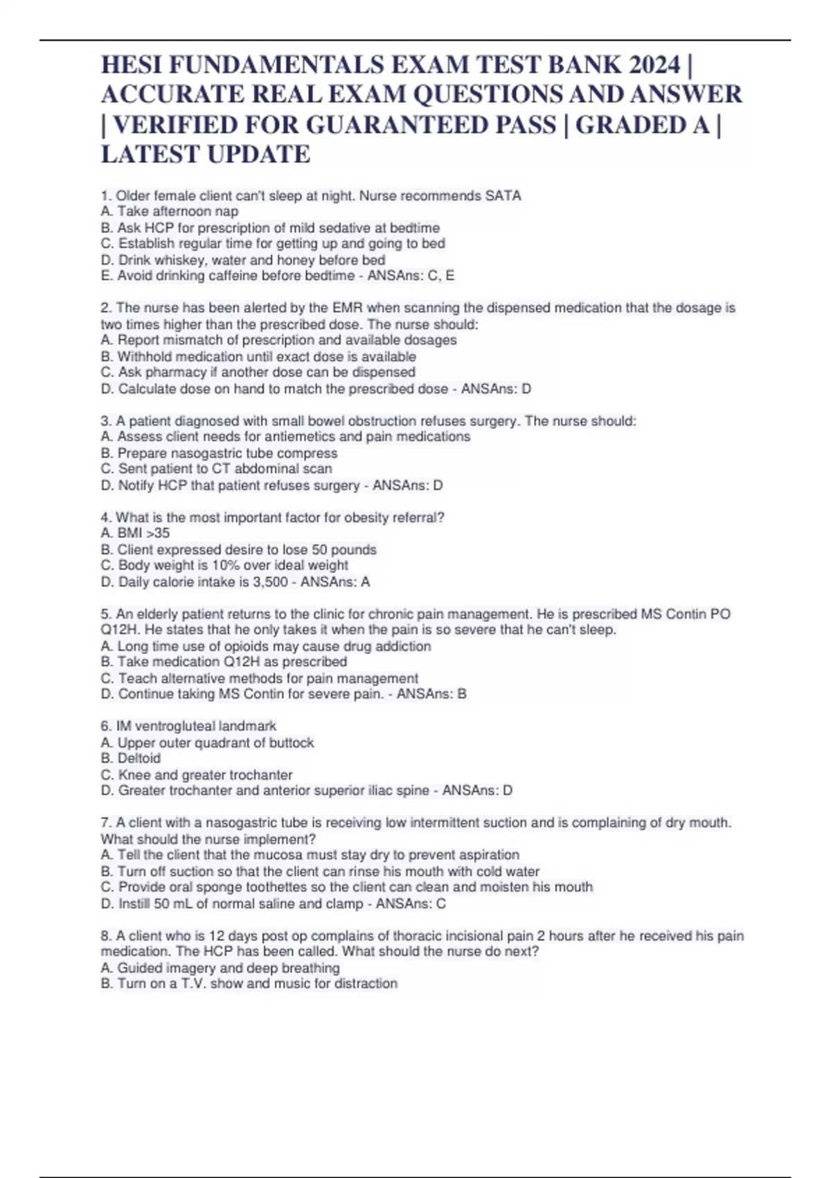, HESI FUNDAMENTALS EXAM TEST BANK 2024 |