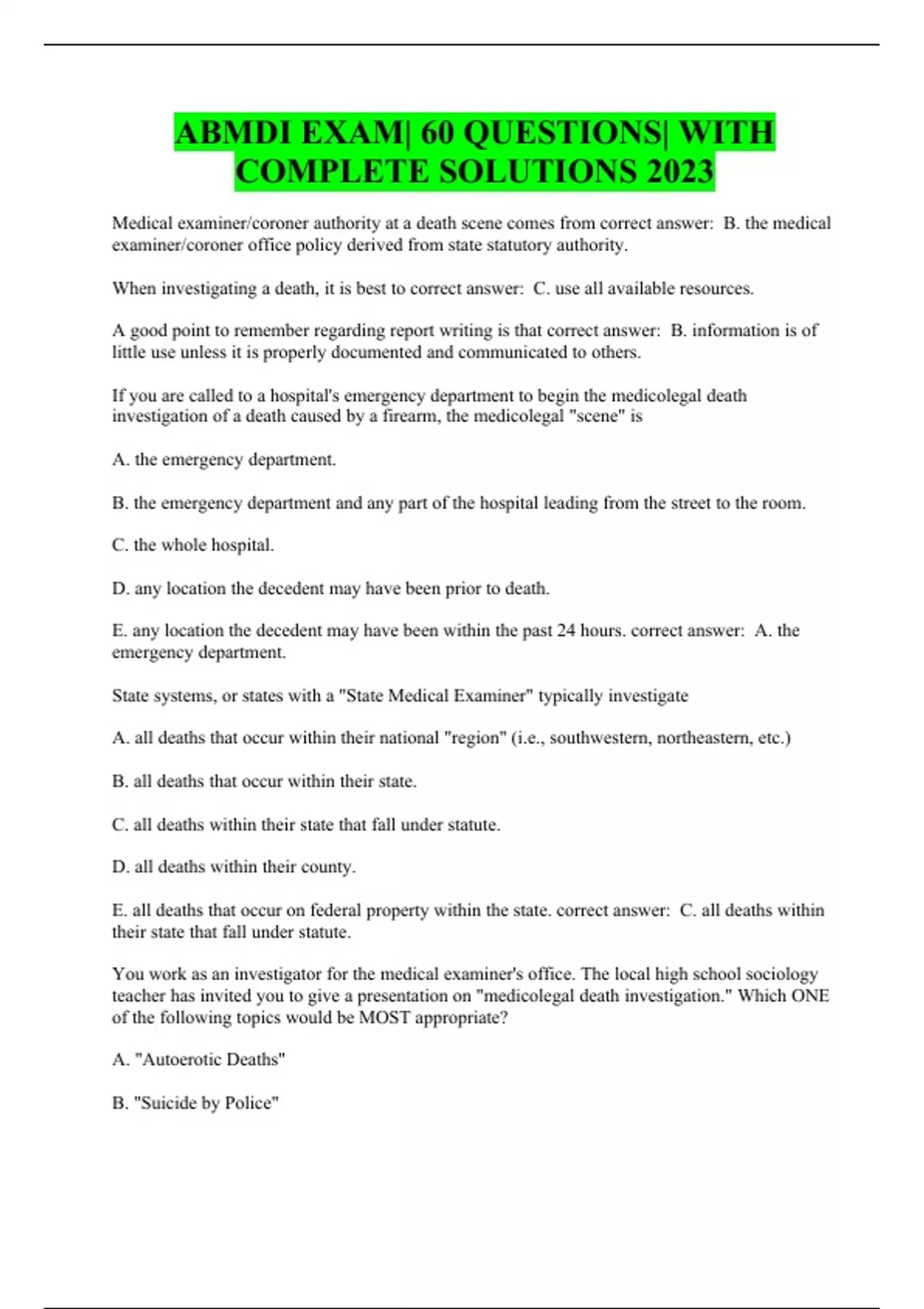 ABMDI EXAM 60 QUESTIONS WITH COMPLETE SOLUTIONS 2023