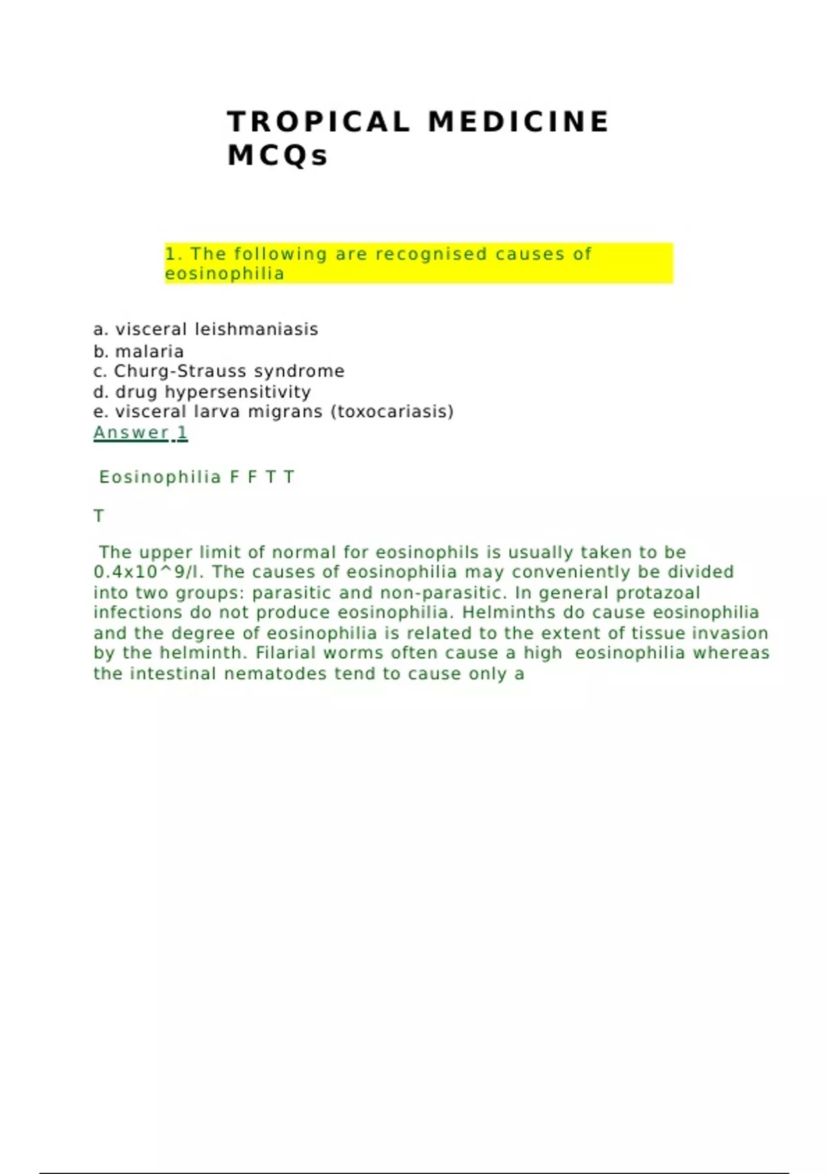 0.4x10^9/l. The causes of eosinophilia may conveniently be divided