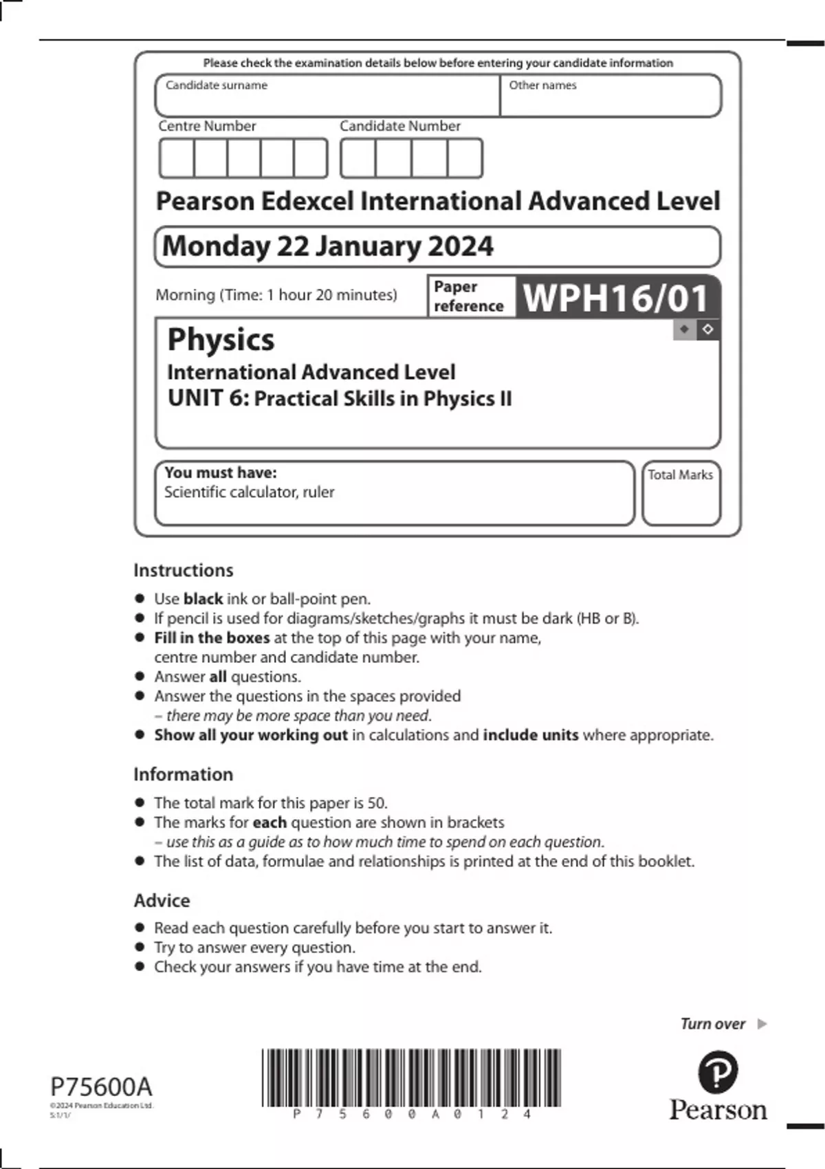 •• The total mark for this paper is 50.