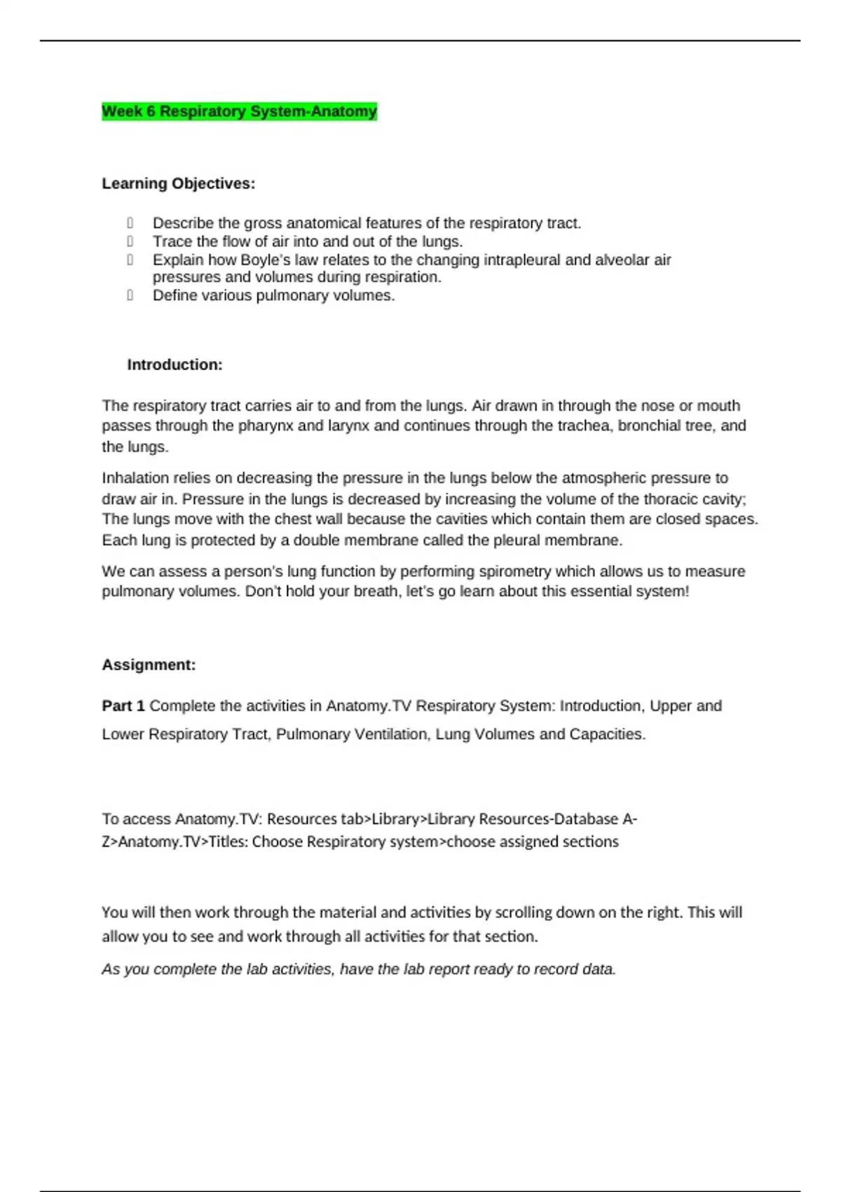 Respiratory Anatomy Lab Report