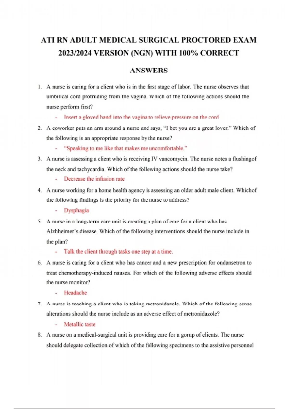 ATI RN ADULT MEDICAL SURGICAL PROCTORED EXAM 2023/2024 VERSION (NGN) WITH 100% CORRECT ANSWERS