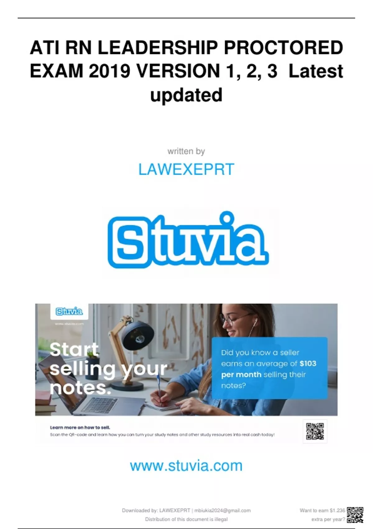 , ATI RN LEADERSHIP PROCTORED EXAM 2019 VERSION 1 2 3
