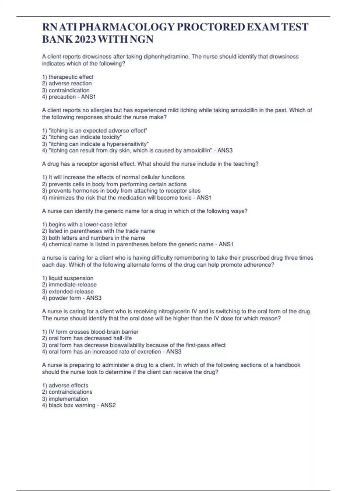 RN ATI PHARMACOLOGY PROCTORED EXAM TEST BANK 2023 WITH NGN