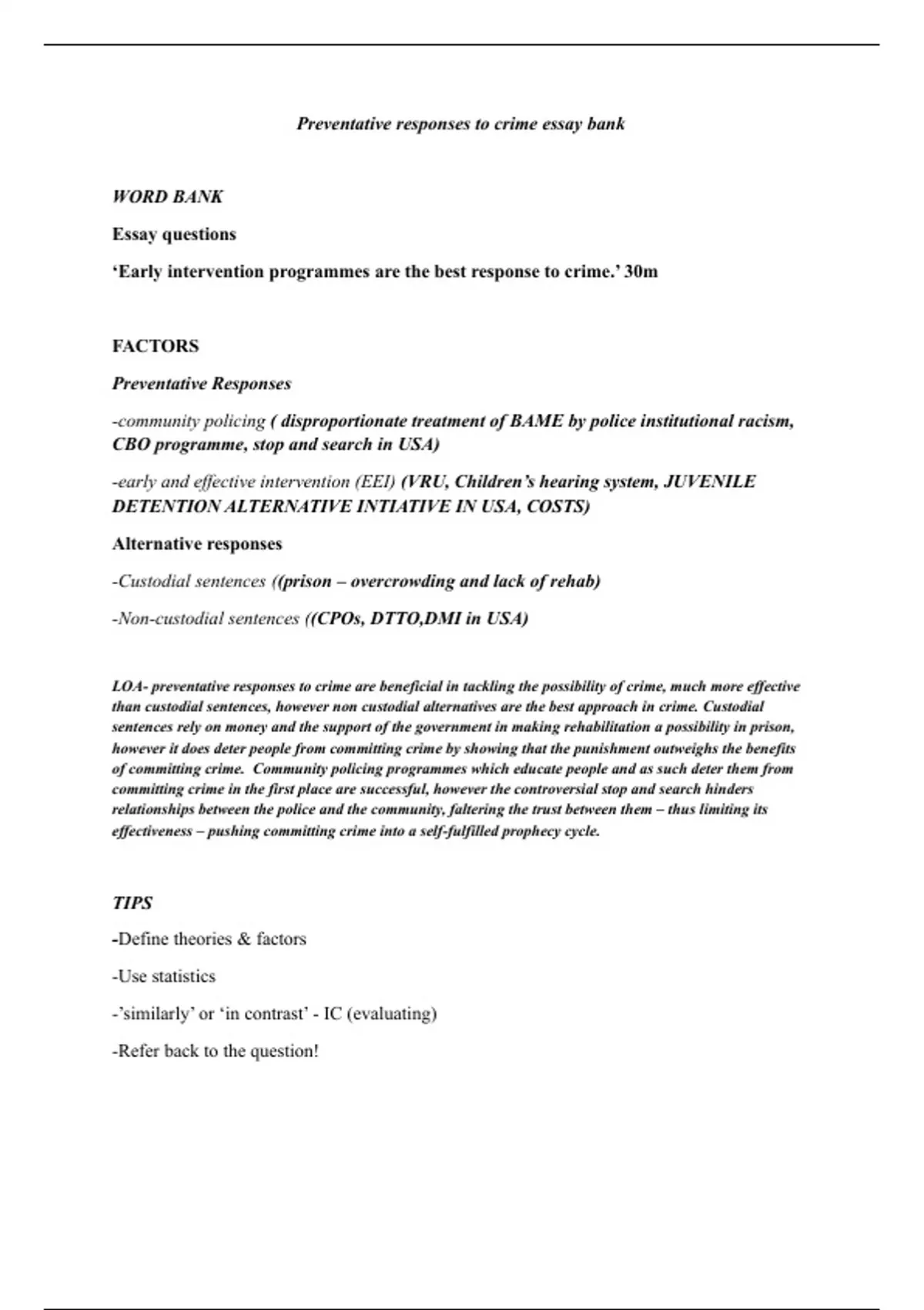 FULL MARK advanced higher Modern Studies SQA essay bank for theories of punishment essay.