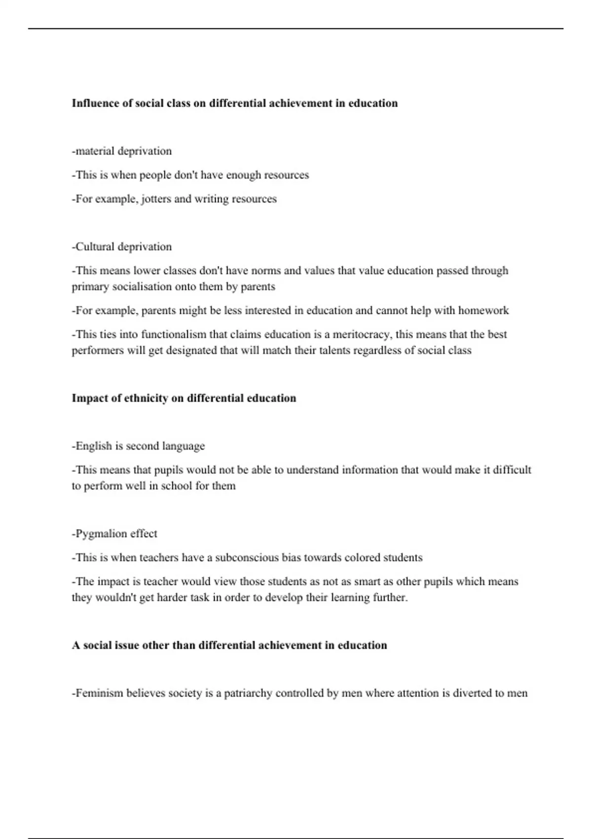 Influence of social class on differential achievement in education