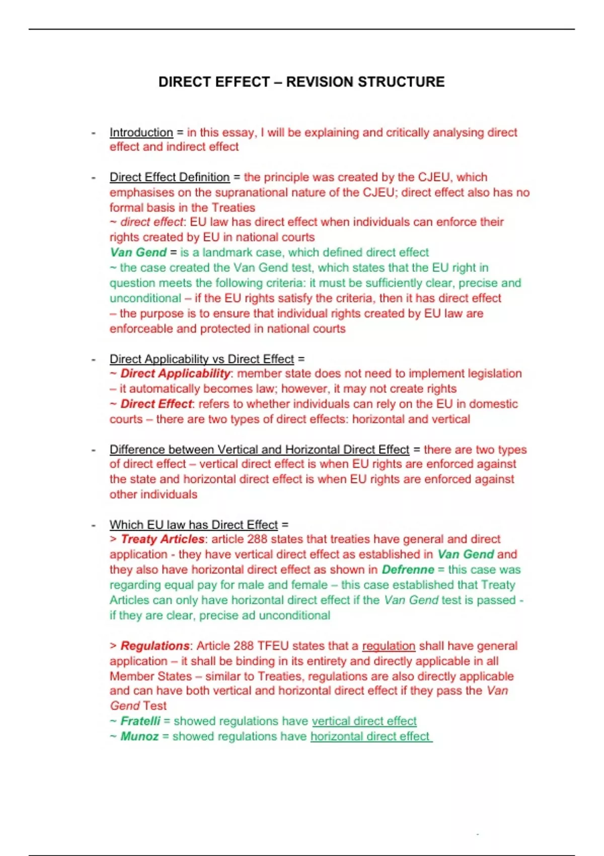 - Direct Effect Definition = the principle was created by the CJEU, which