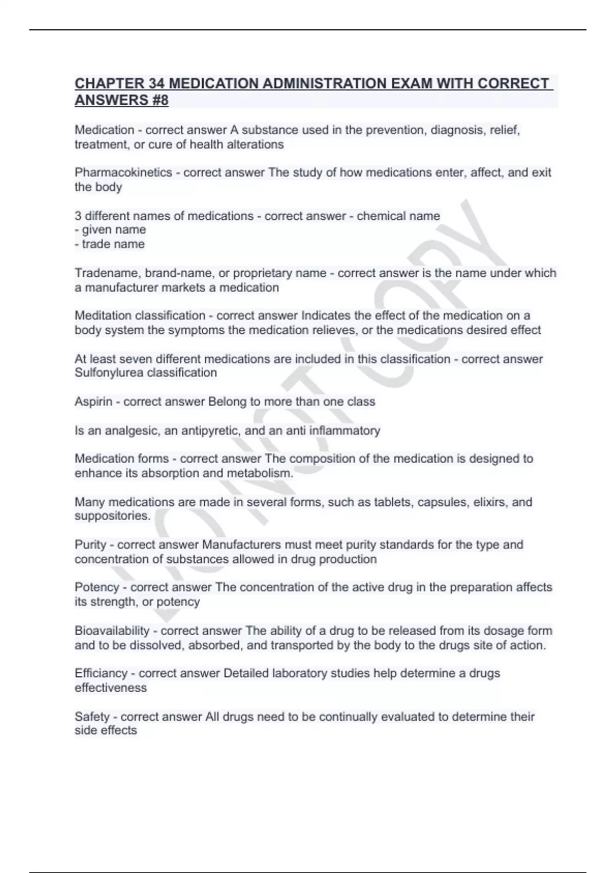 CHAPTER 34 MEDICATION ADMINISTRATION EXAM WITH CORRECT ANSWERS #8