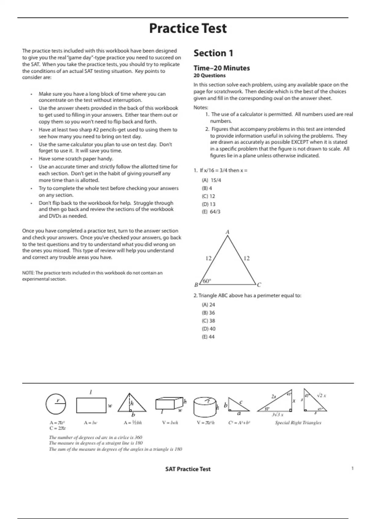 NOTE: The practice tests included in this workbook do not contain an