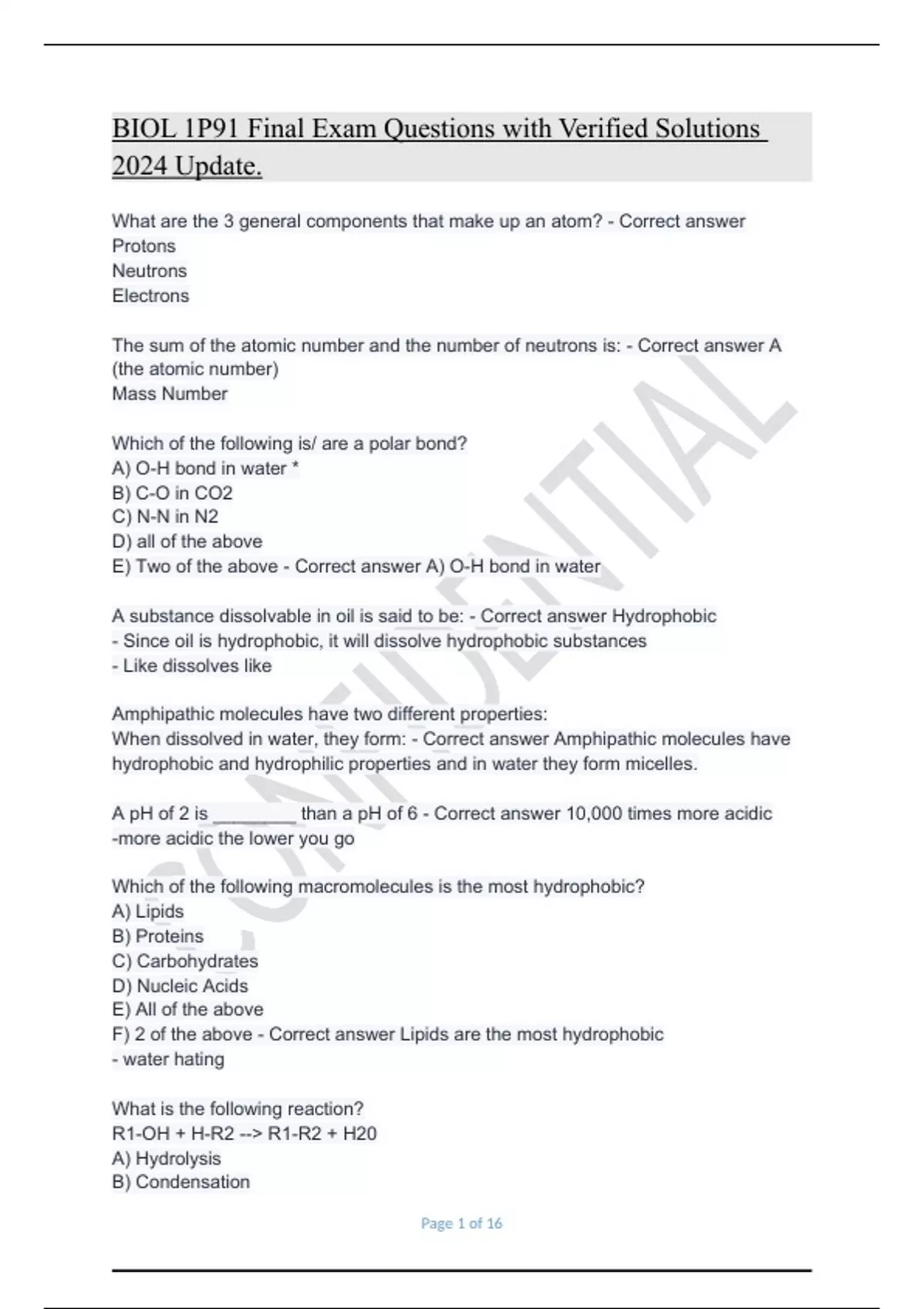 BIOL 1P91 Final Exam Questions with Verified Solutions 2024 Update.BIOL 1P91 Final Exam Questions with Verified Solutions 2024 Update.