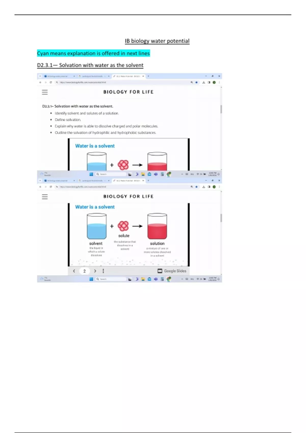 D2.3.1— Solvation with water as the solvent