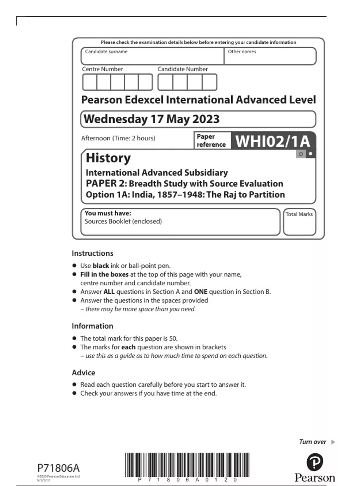 • The total mark for this paper is 50.