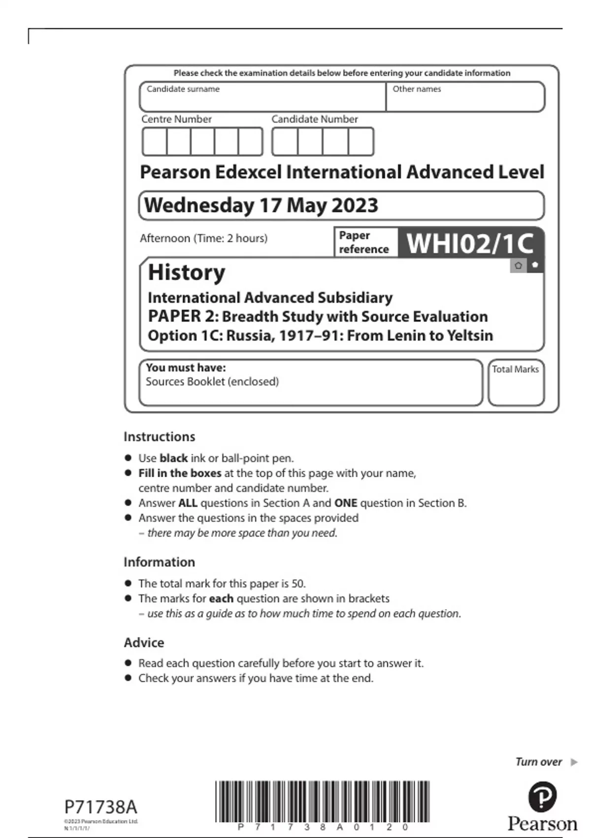 • The total mark for this paper is 50.