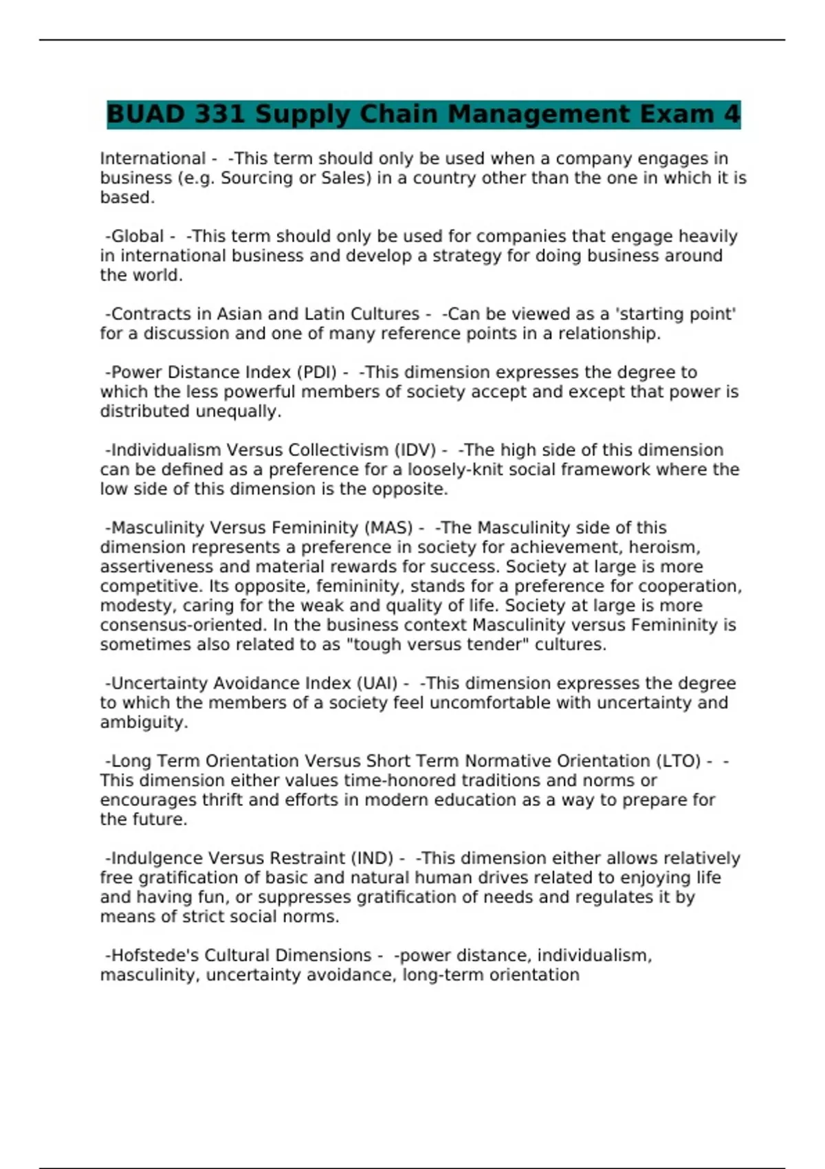 BUAD 331 Supply Chain Management Exam 4