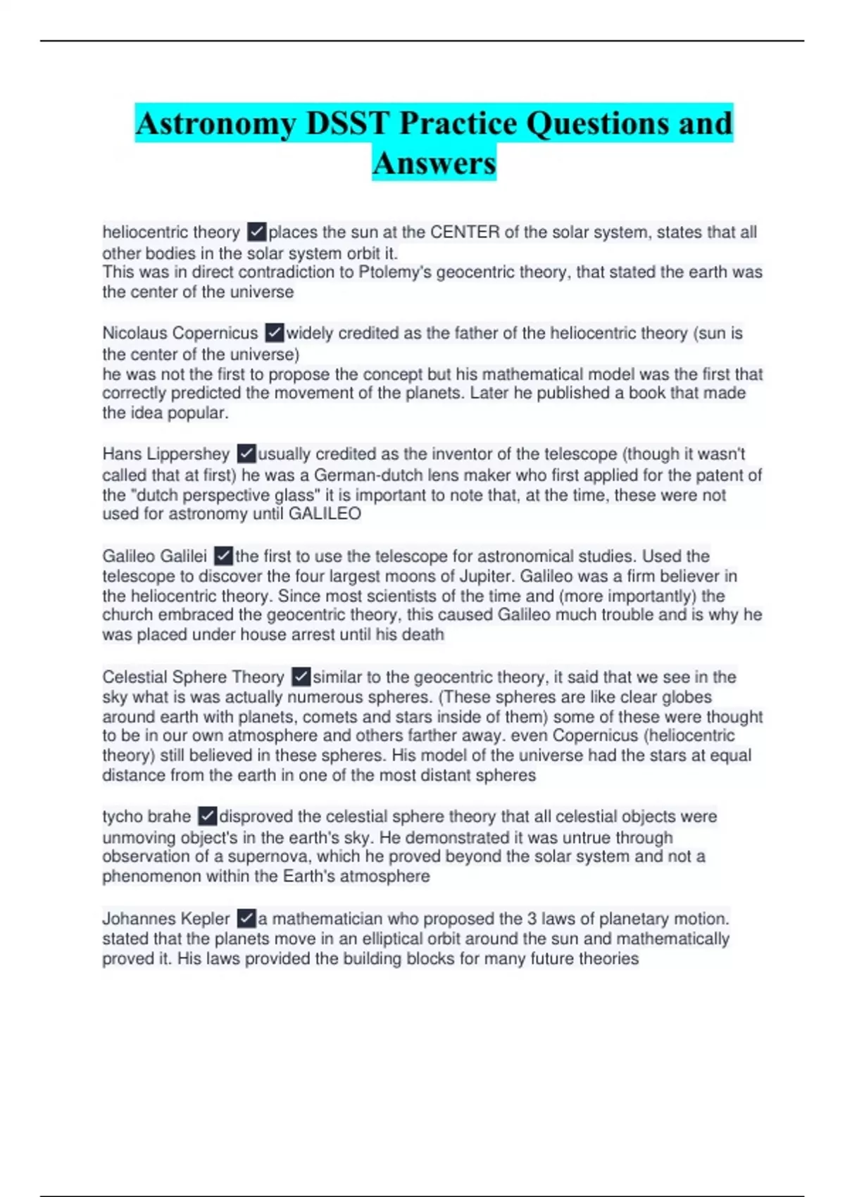 Astronomy DSST Practice Questions and Answers