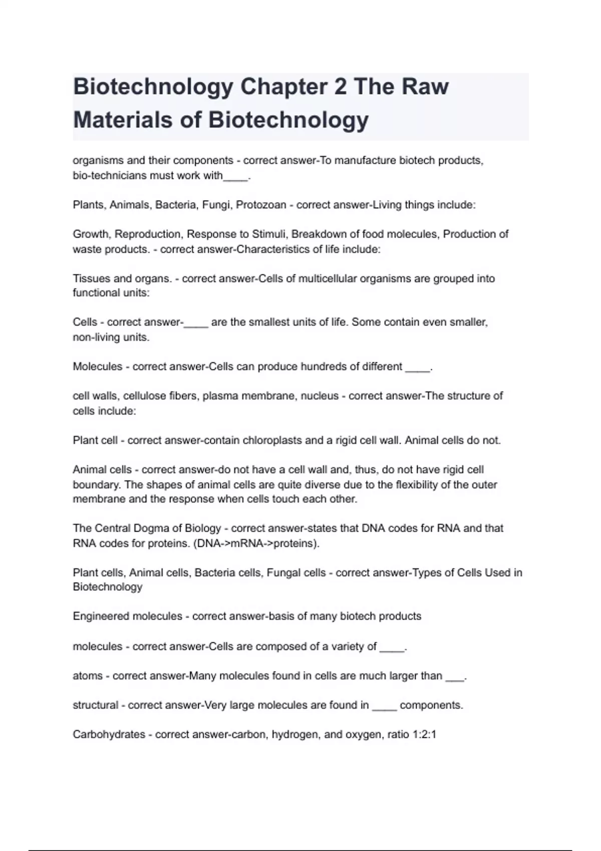 Biotechnology Chapter 2 The Raw Materials of Biotechnology with complete solution