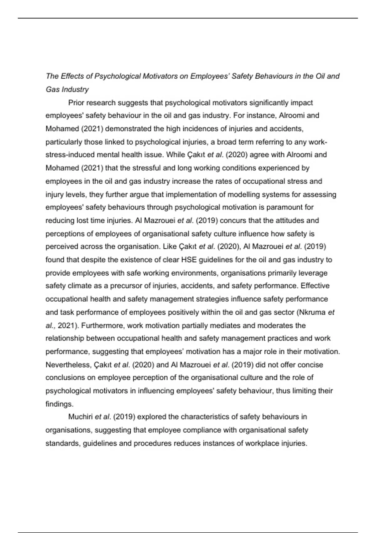employees' safety behaviour in the oil and gas industry. For instance, Alroomi and