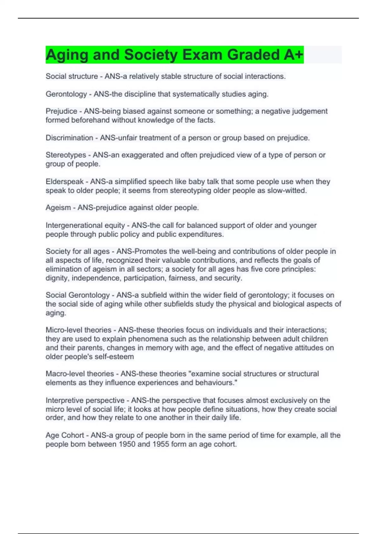 Aging and Society Exam Graded A+