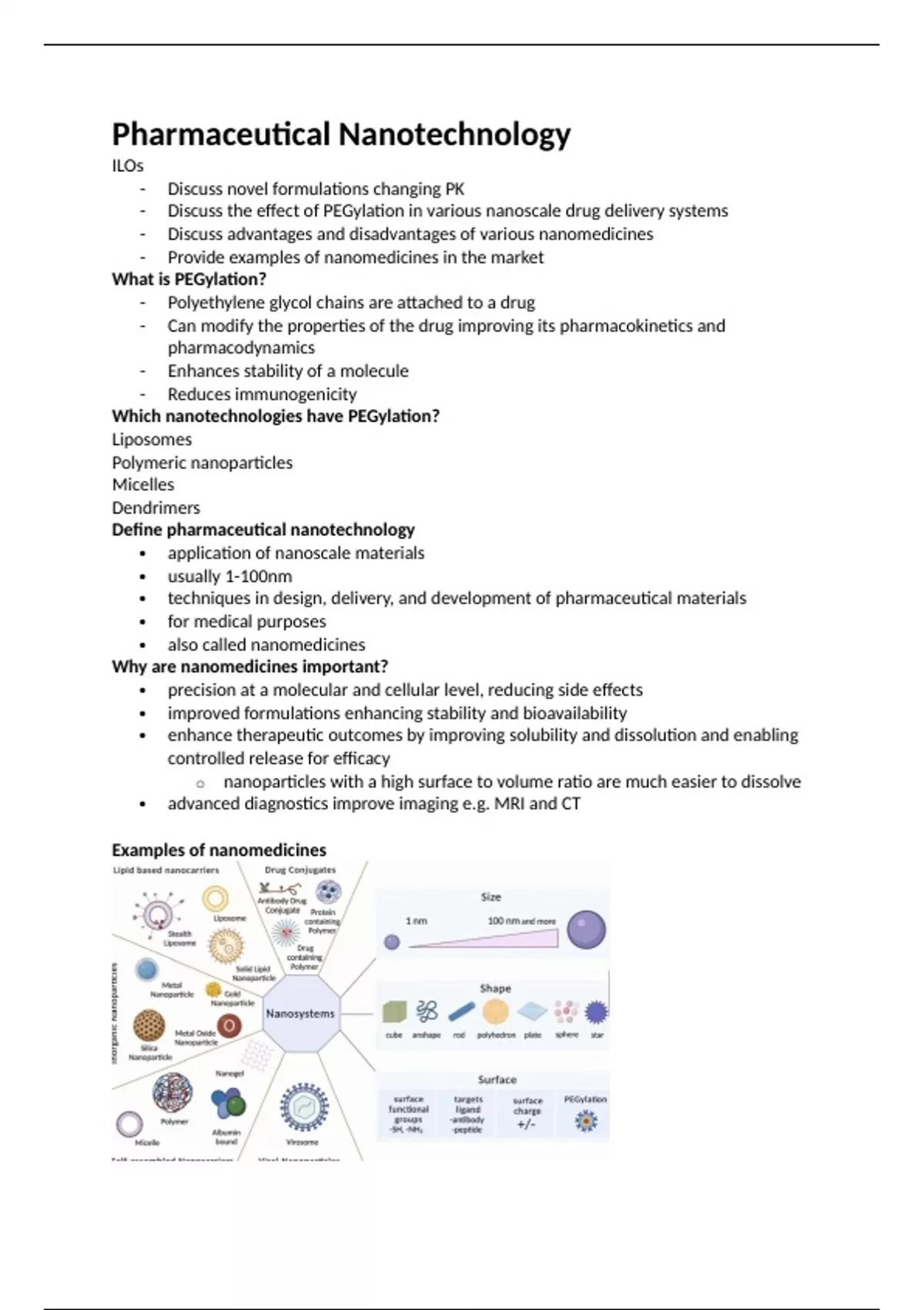 Summary Pharmaceutical Nanotechnologies