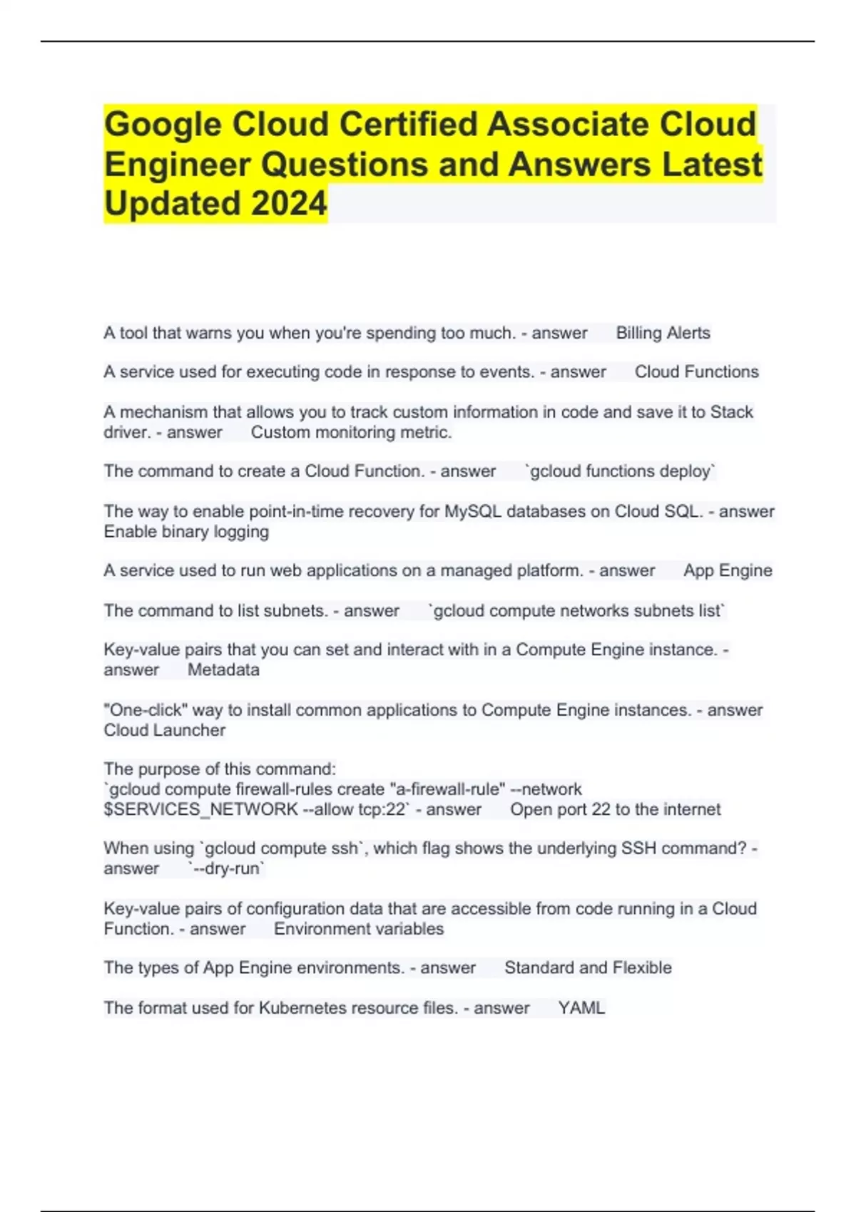 Google Cloud Certified Associate Cloud Engineer Questions and Answers Graded A+