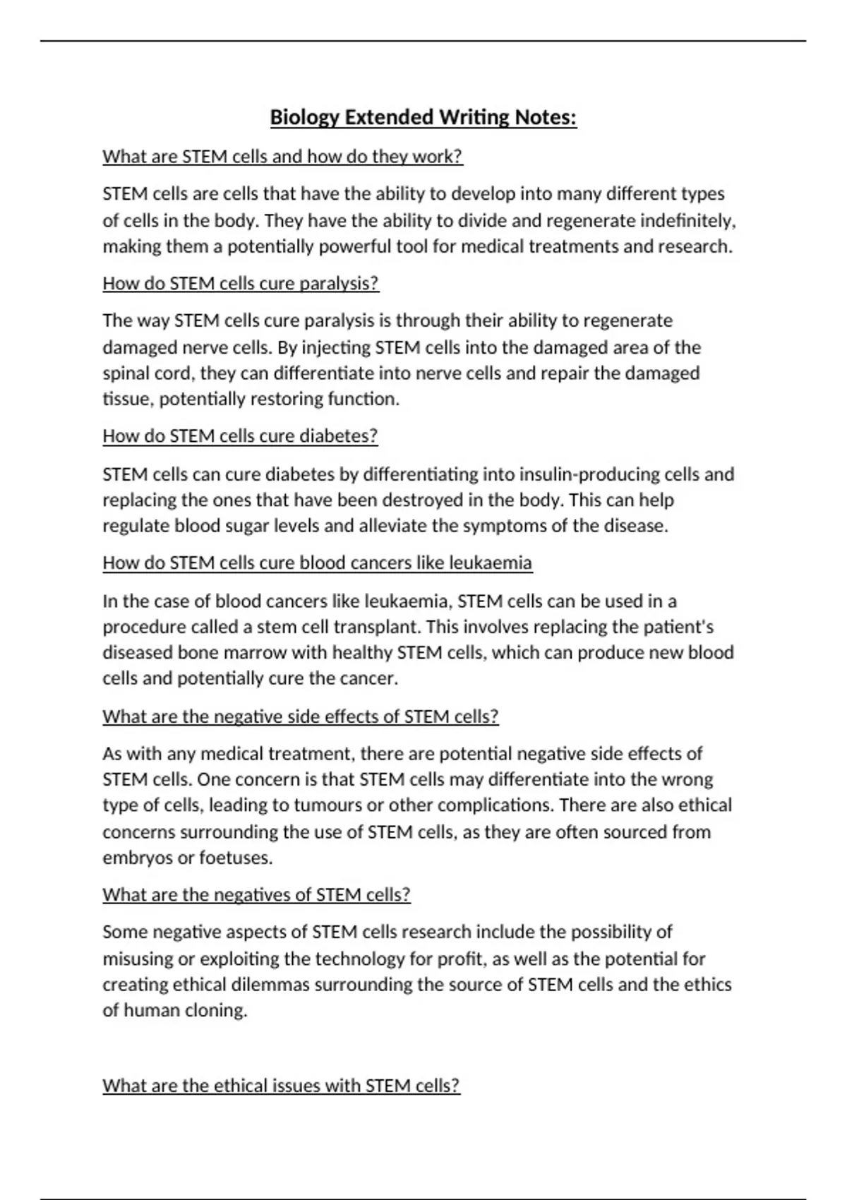 Biology Extended Writing Notes:
