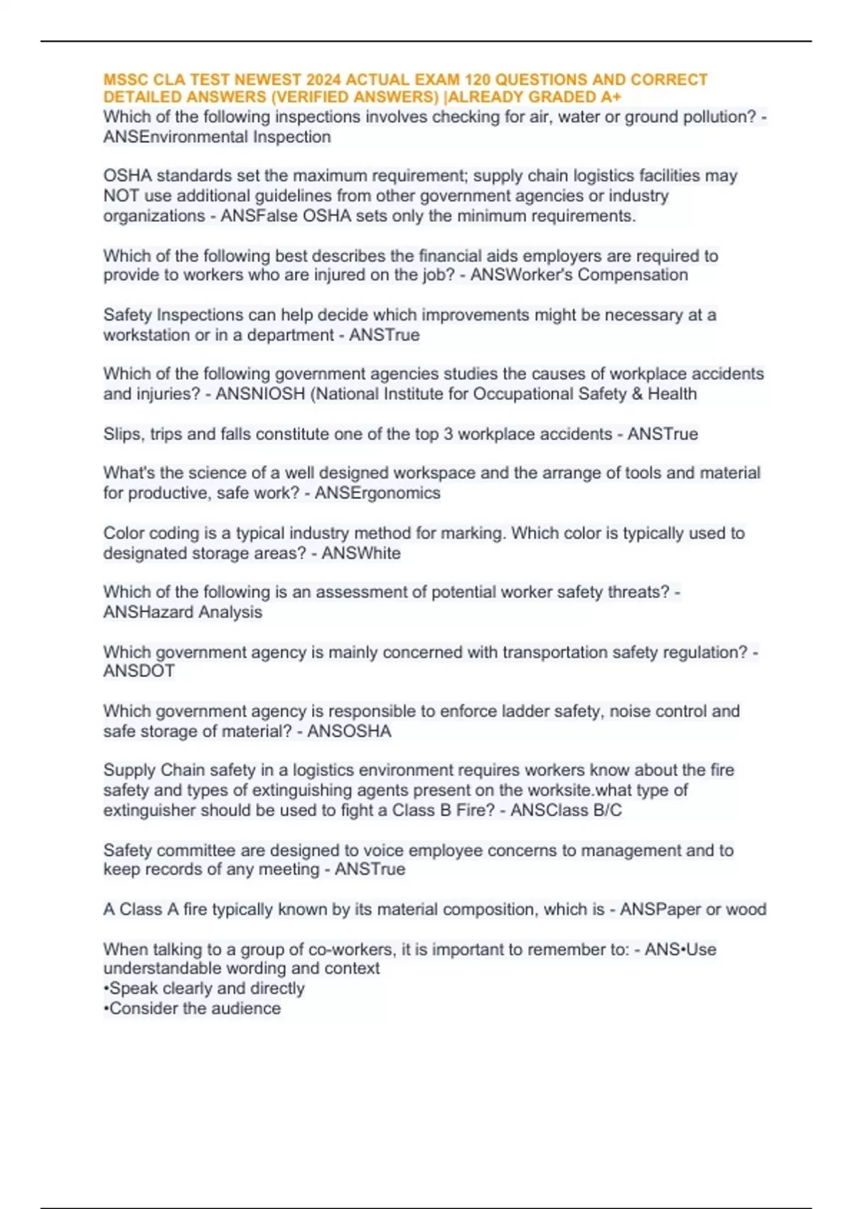 , MSSC CLA TEST NEWEST 2024 ACTUAL EXAM 120 QUESTIONS AND CORRECT
