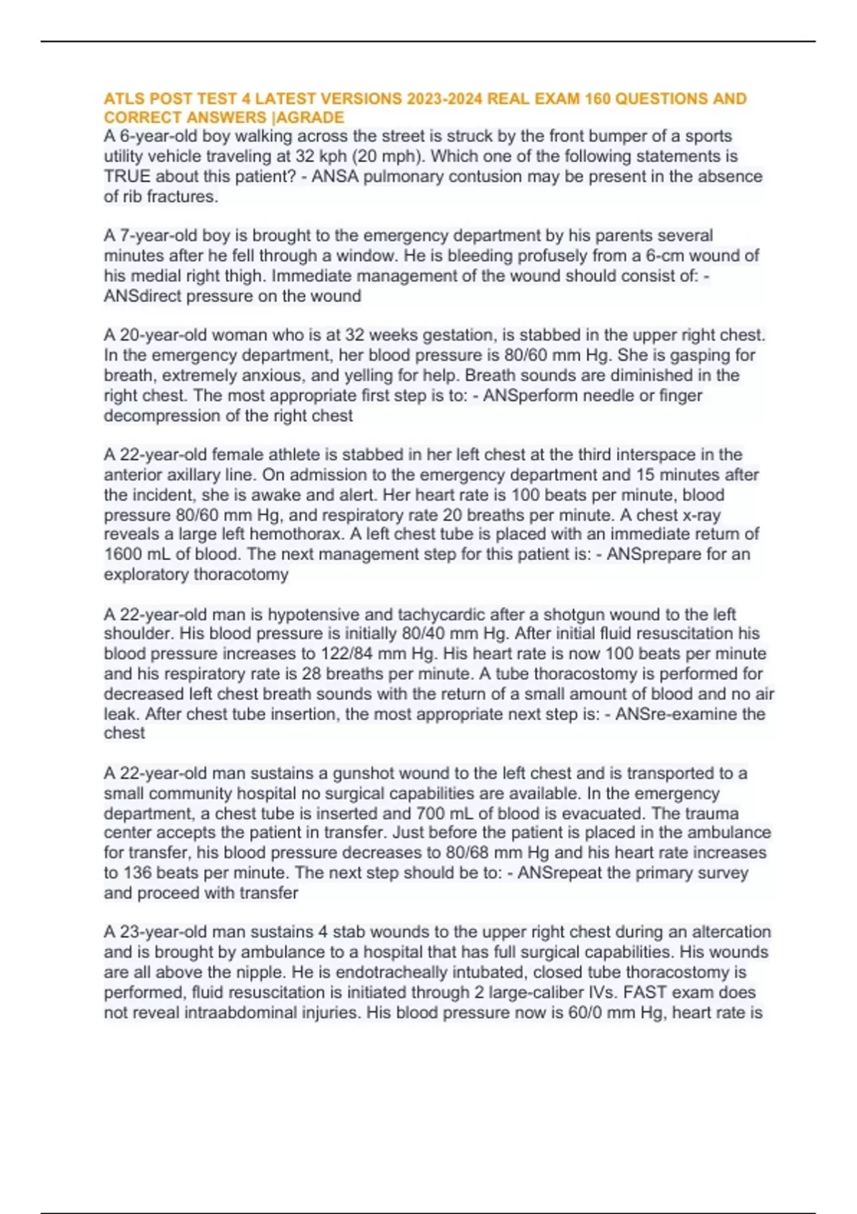 , ATLS POST TEST 4 LATEST VERSIONS 2023-2024 REAL EXAM 160 QUESTIONS AND