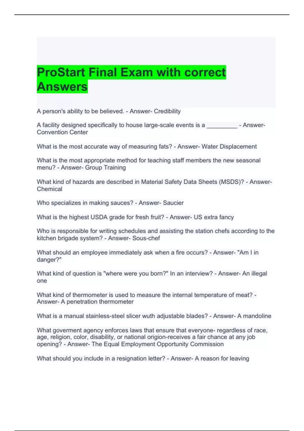 ProStart Final Exam with correct Answers