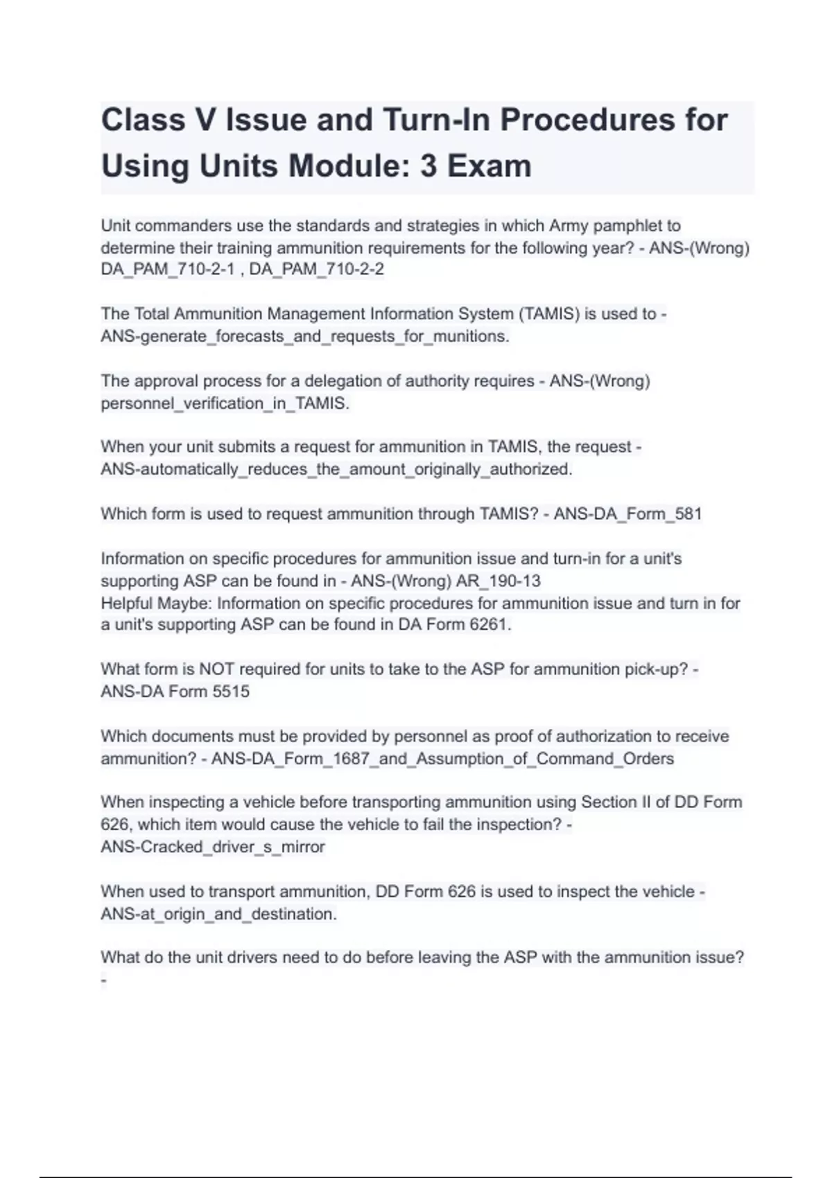 Class V Issue and Turn-In Procedures for Using Units Module_ 3 Exam