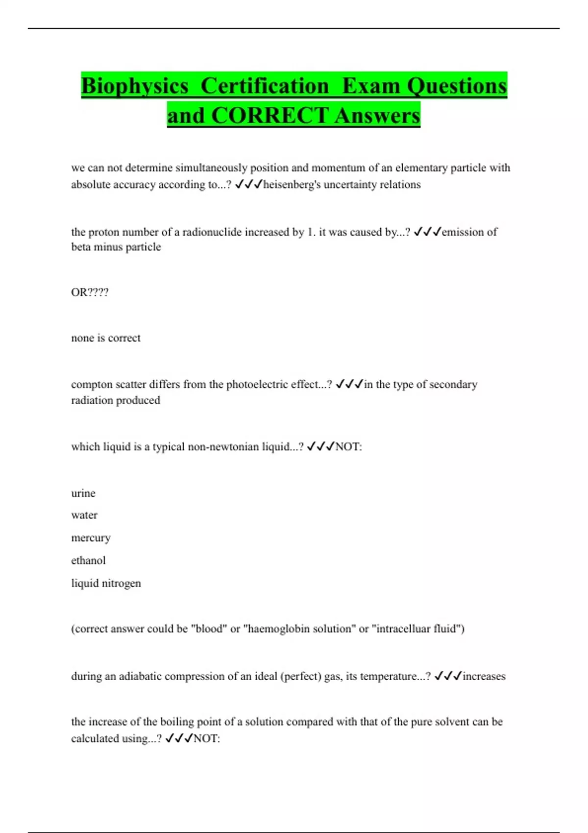Biophysics Certification Exam Questions and CORRECT Answers