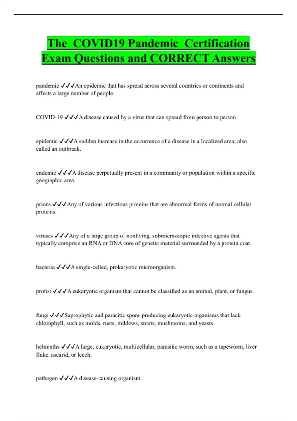 The COVID19 Pandemic Certification Exam Questions and CORRECT Answers