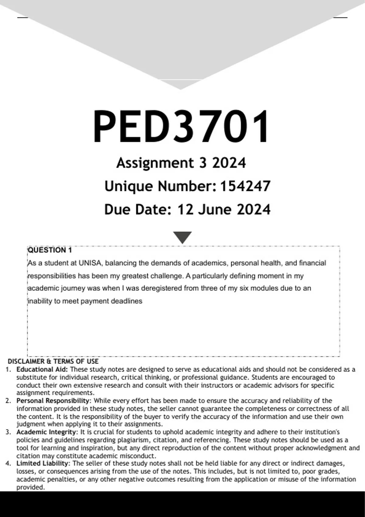 4. Limited Liability: The seller of these study notes shall not be held liable for any direct or indirect damages,