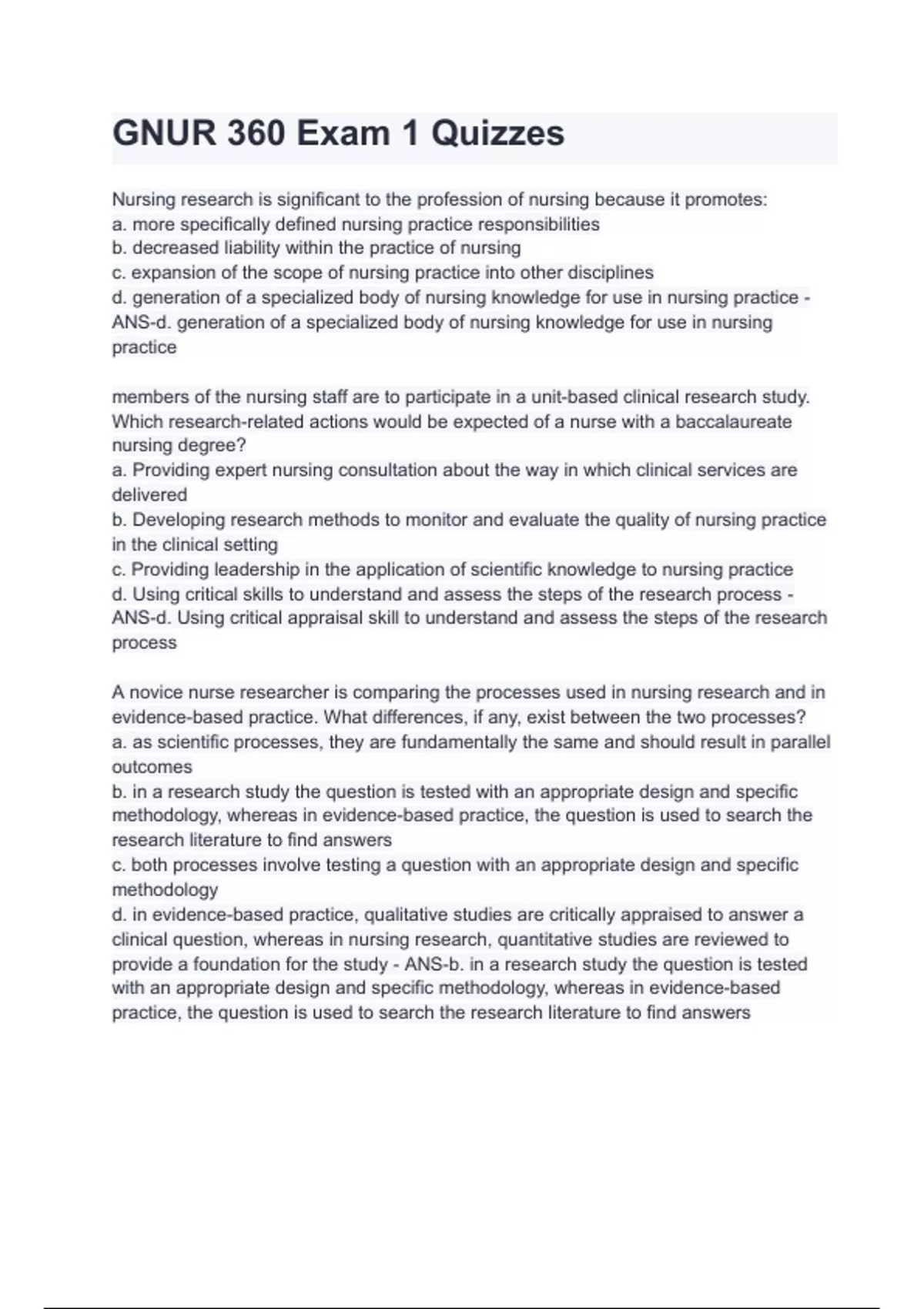 gnur 360 exam 1 quizzes with complete solution