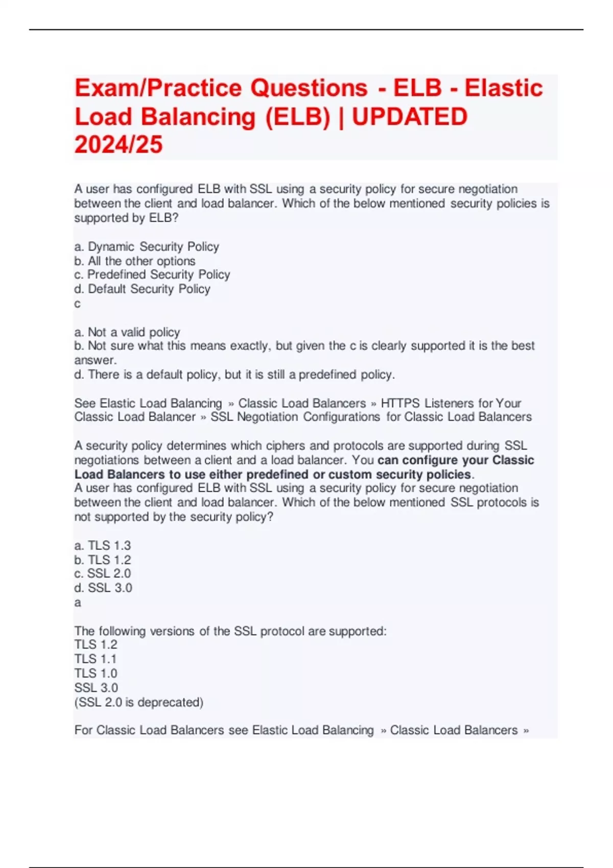 Exam/Practice Questions - ELB - Elastic Load Balancing (ELB) | UPDATED 2024/25