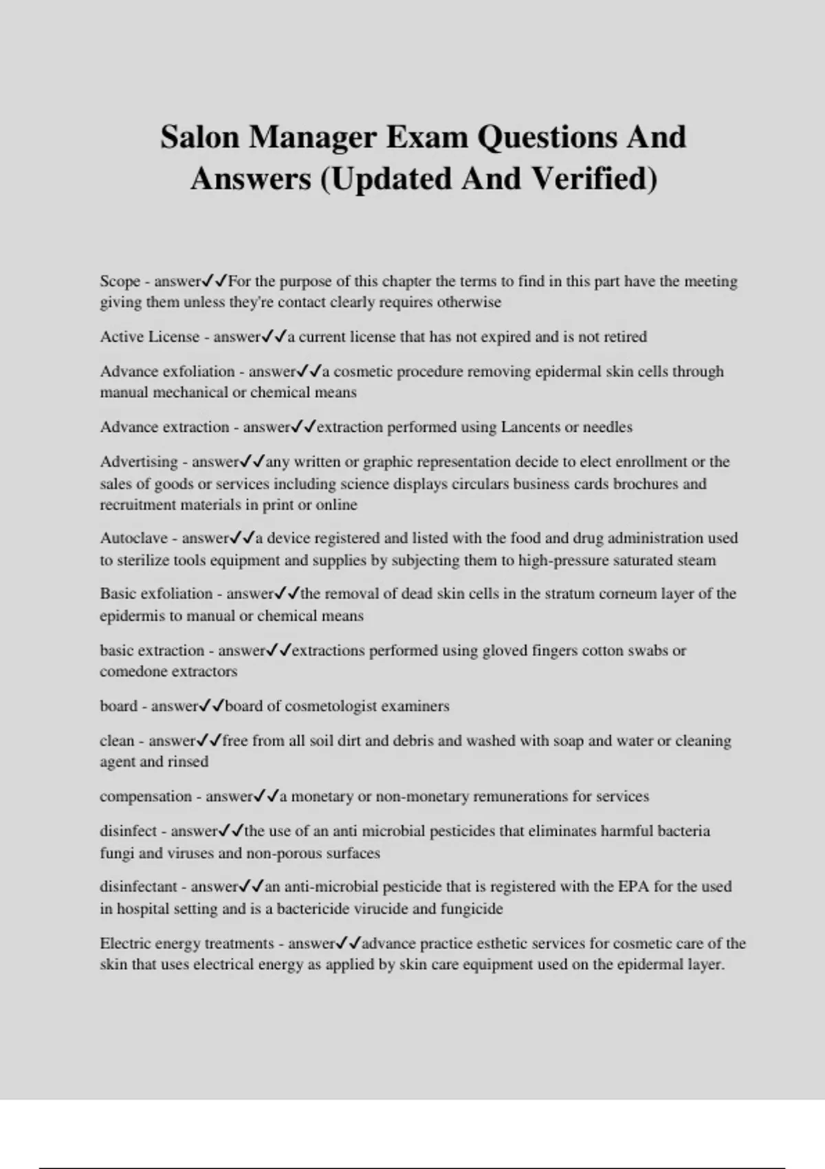Salon Manager Exam Questions And Answers (Updated And Verified)