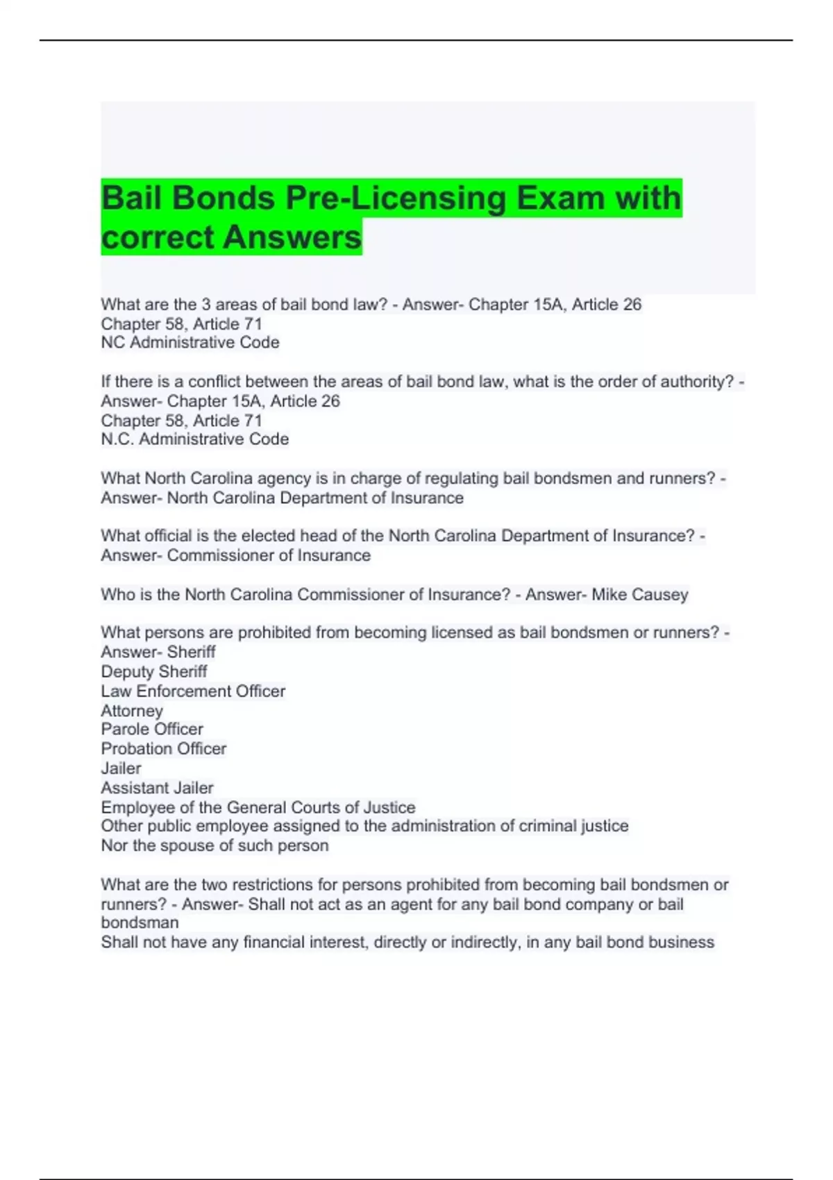 Bail Bonds Pre-Licensing Exam with correct Answers-Graded A