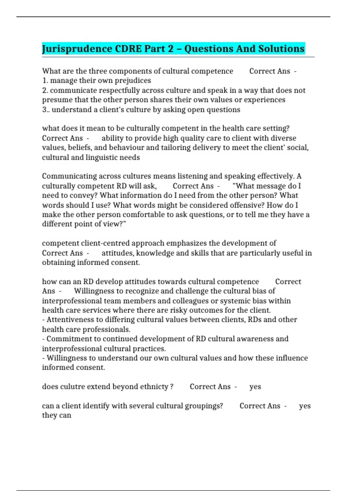 jurisprudence cdre part 2 questions and solution