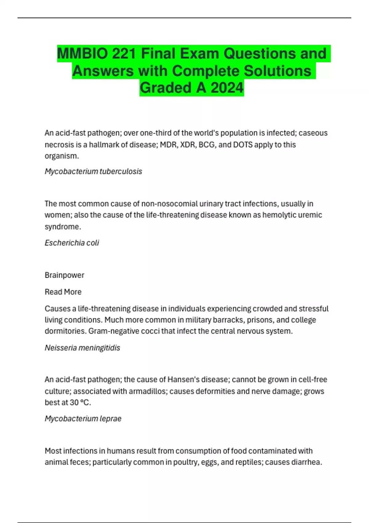 MMBIO 221 Final Exam Questions and Answers with Complete Solutions Graded A 2024