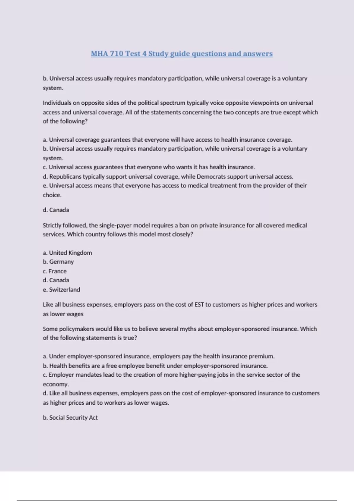 mha 710 test 4 study guide questions and answers