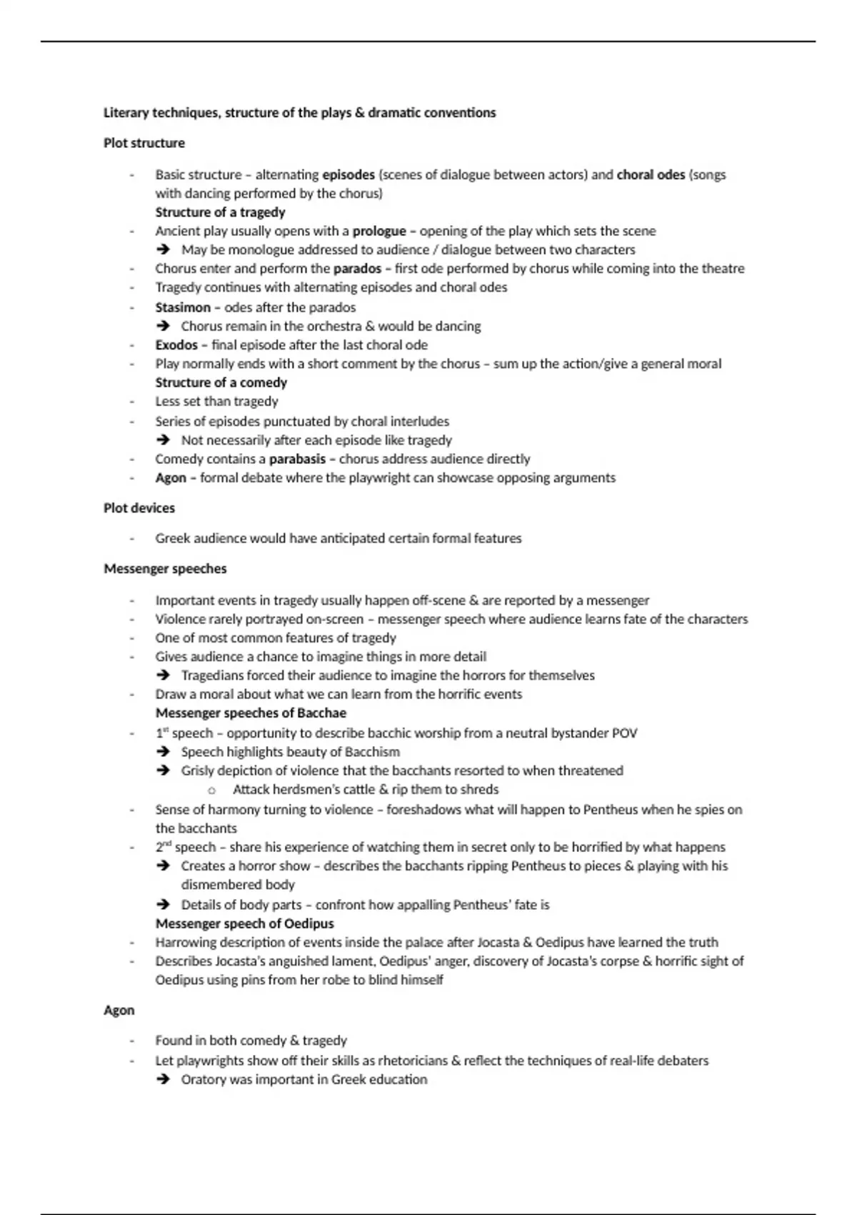 - Agon – formal debate where the playwright can showcase opposing arguments