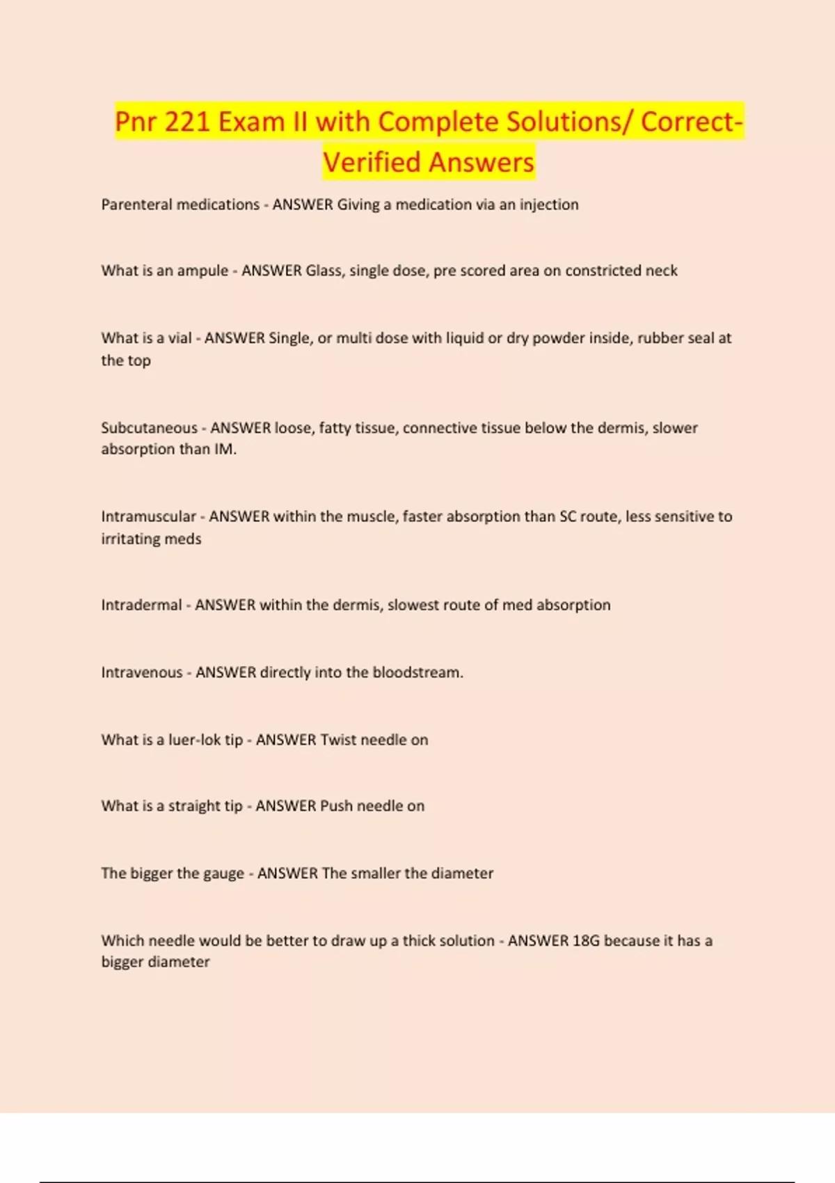 Pnr 221 Exam II with Complete Solutions/ Correct- Verified Answers